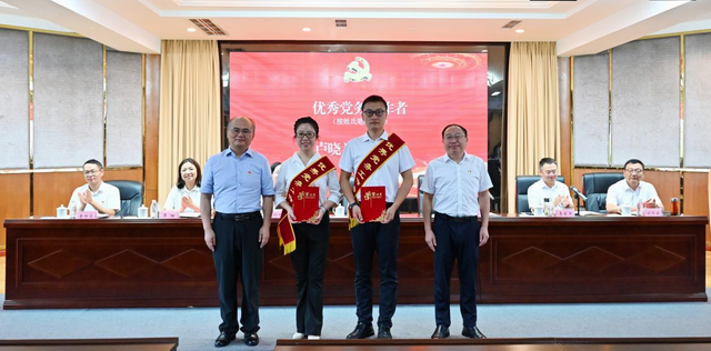 “两优一先”表彰大会上,校领导为受表彰的11名优秀共产党员、2名优秀党务工作者、1个先进基层党组织颁发了荣誉证书和奖牌。优秀共产党员代表李慧发言。