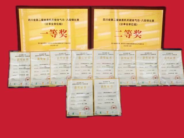 10月31日,由四川省体育局、中共四川省委省直属机关工作委员会联合主办的四川省第二届省直机关健身气功·八段锦比赛圆满落幕。我校选派的两支教师代表队凭借精湛技艺与稳定发挥,分别荣获企事业单位组团体一、二等奖。