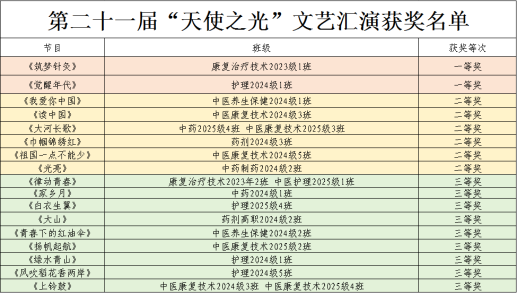 11月25日,学校举办第二十一届“天使之光”文艺汇演,生动展现了学校以中医药文化培根铸魂、以红色基因启智润心的育人实践。