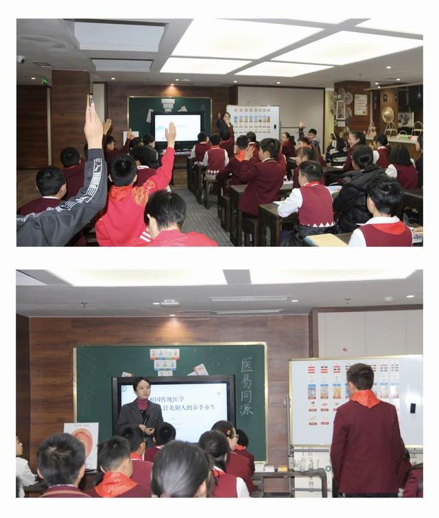 在中医药文化科普环节,学校教师李慧以通俗易懂的语言,结合实物展示,向孩子们讲解针灸的历史渊源与临床应用,并生动演示穴位保健操作。现场互动问答气氛热烈,孩子们争先恐后举手提问,在轻松愉悦的氛围中加深了对中医外治法的认识。同时,围绕“春季食养”主题,向学生普及应季饮食小常识,引导他们关注日常健康管理。
