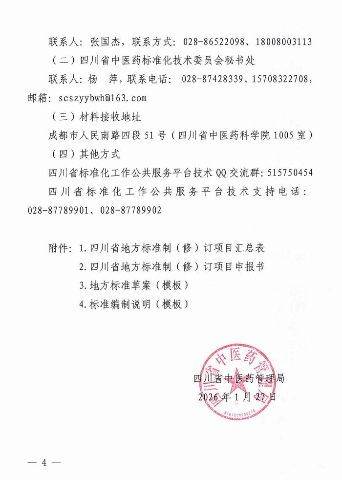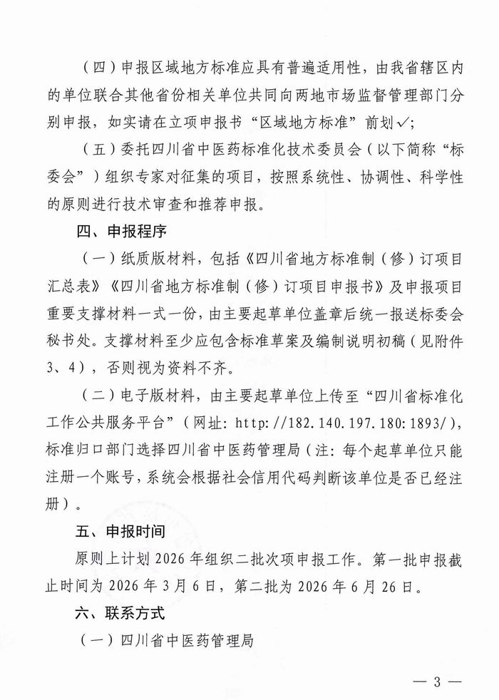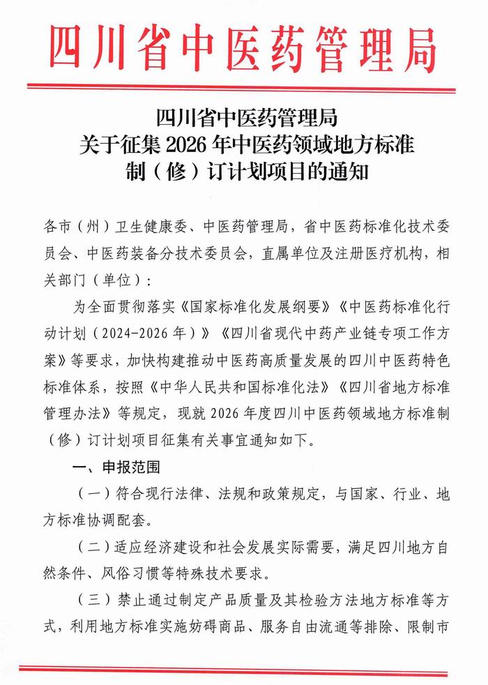 关于征集2026年中医药领域地方标准制(修)订计划项目的通知