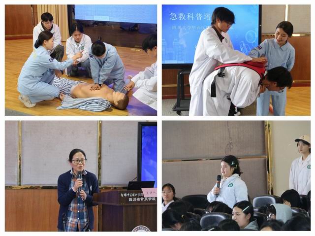 为增强师生急救意识,进一步提升应对突发事件的应急处置能力,4月7日,学校特邀四川大学华西医院急诊科团队李雅楠、黄雪梅、李启奉、谭雨秋四位教师来校开展急救科普培训讲座。全校师生代表240余人参加培训。