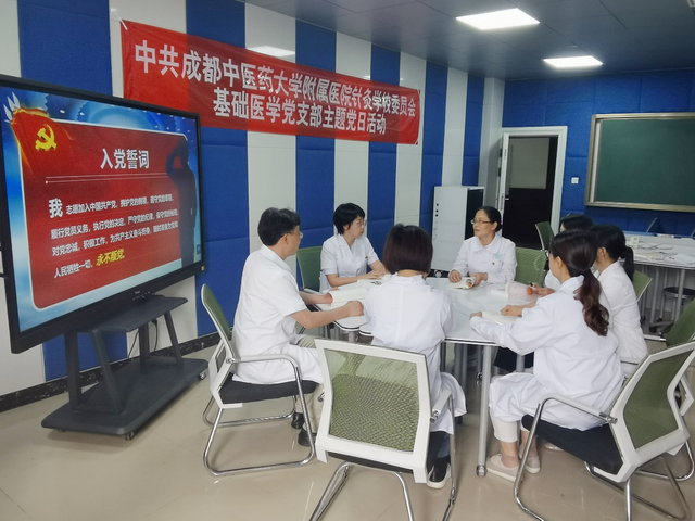支部书记付昌萍领学了《论中国共产党历史》节选片段“知史爱党,知史爱国”,并结合自身工作,从“为什么当教师”“怎样当好教师”“如何坚持学高为师、身正为范的职业操守”等方面谈学习心得体会;老党员廖海清同志带领大家重温了入党誓词;党员教师们围绕学校近期重点工作:中医康复保健省级示范专业建设、高职学院申报及彭州新校区建设工作,展开了积极的讨论。